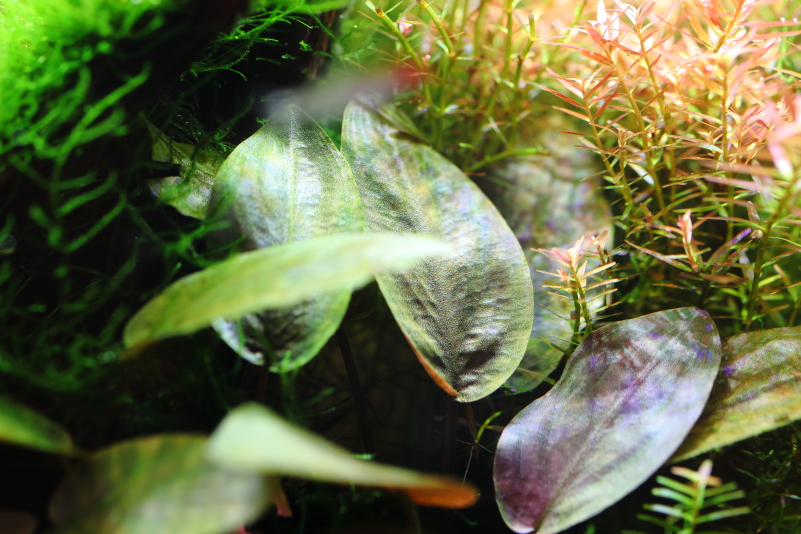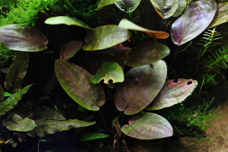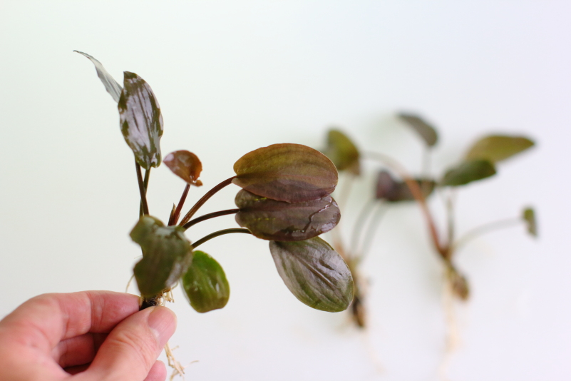 クリプトコリネのような渋みのある葉の色とゆっくり育つ成長が特徴の水草です。